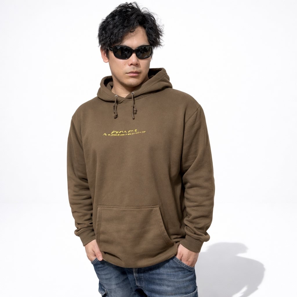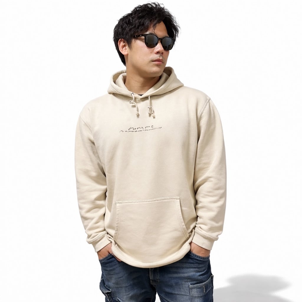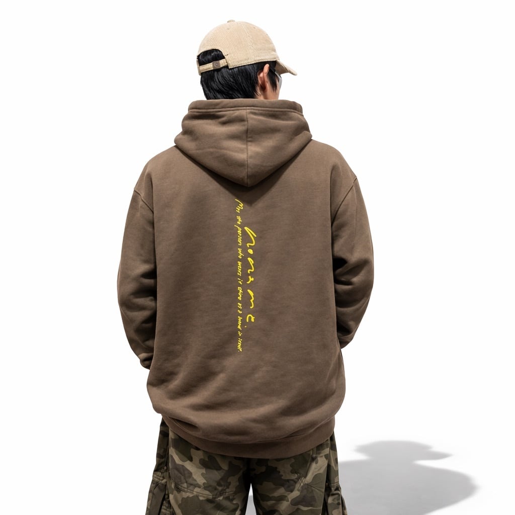 シンプルな中にさりげない個性が光る、裏起毛プルオーバーパーカー。背面中央に縦に入ったメッセージロゴがアクセントとなり、ミニマルで洗練された印象を演出します。主張しすぎないデザインなので、幅広いコーディネートに自然と馴染む一枚です。