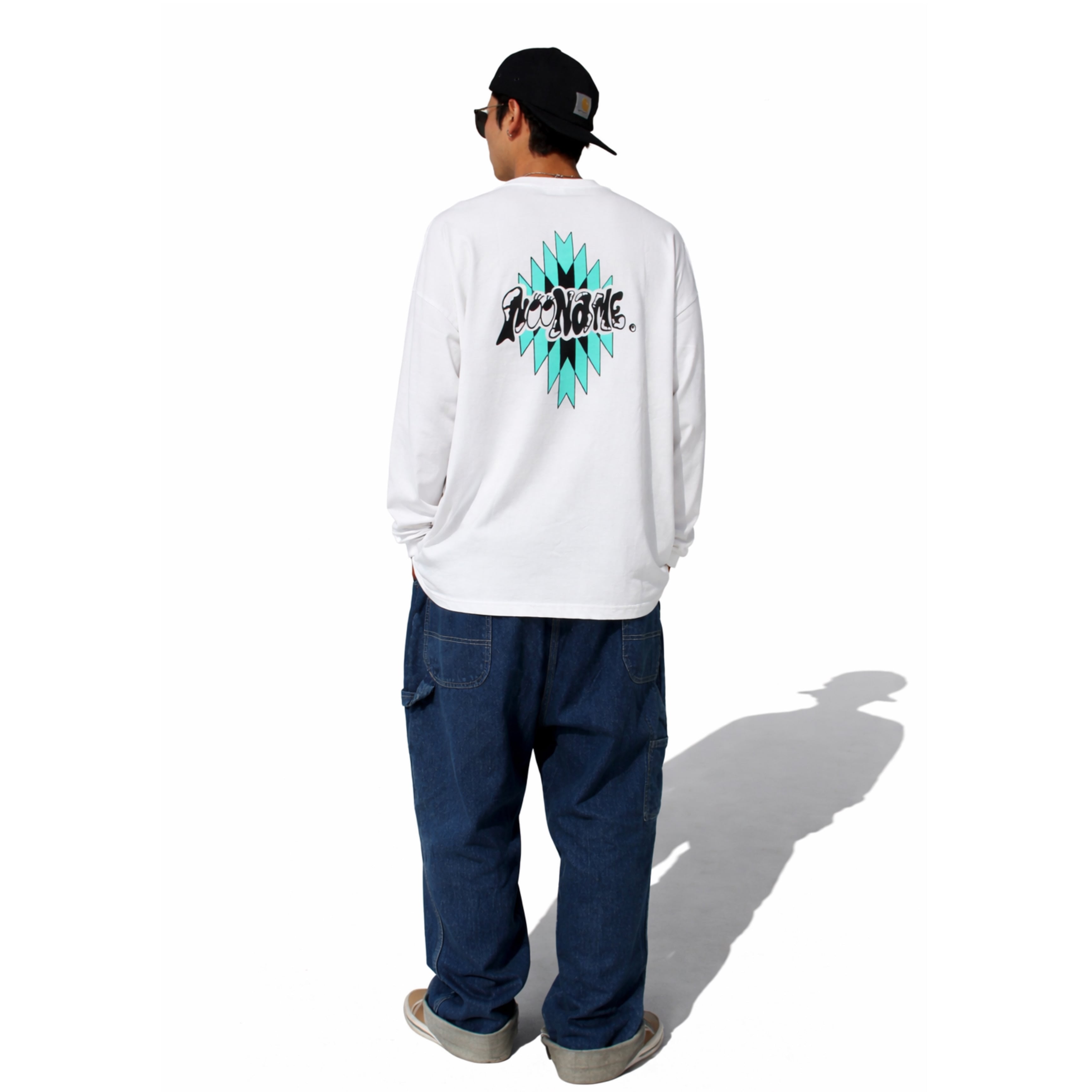 中央に配置されたオルテガ柄風のアートデザインと、存在感ある「NONAME.」ロゴがストリート感を一気に高める一枚です。
