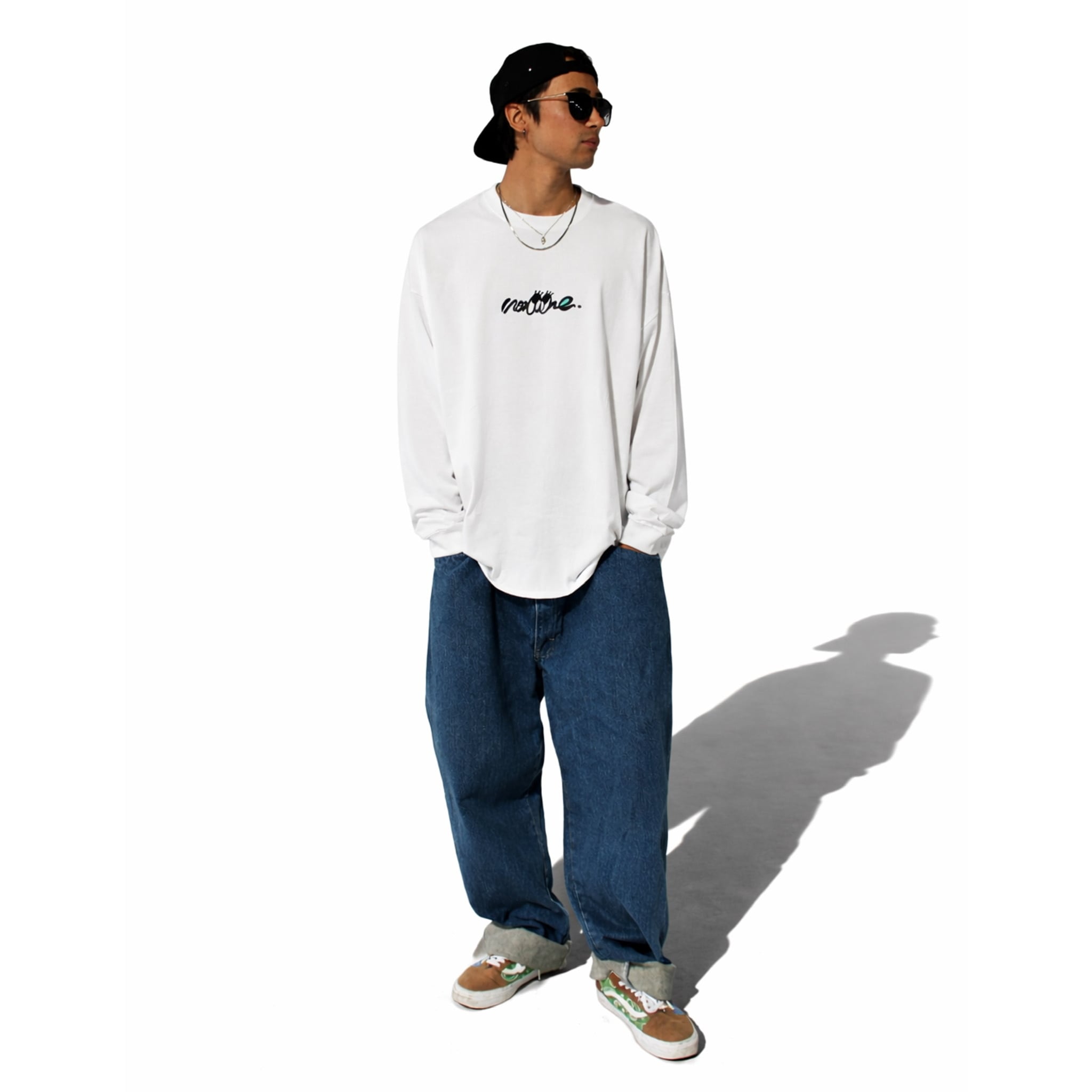 インパクト抜群のバックプリントが目を惹く、グラフィックロングTシャツ。