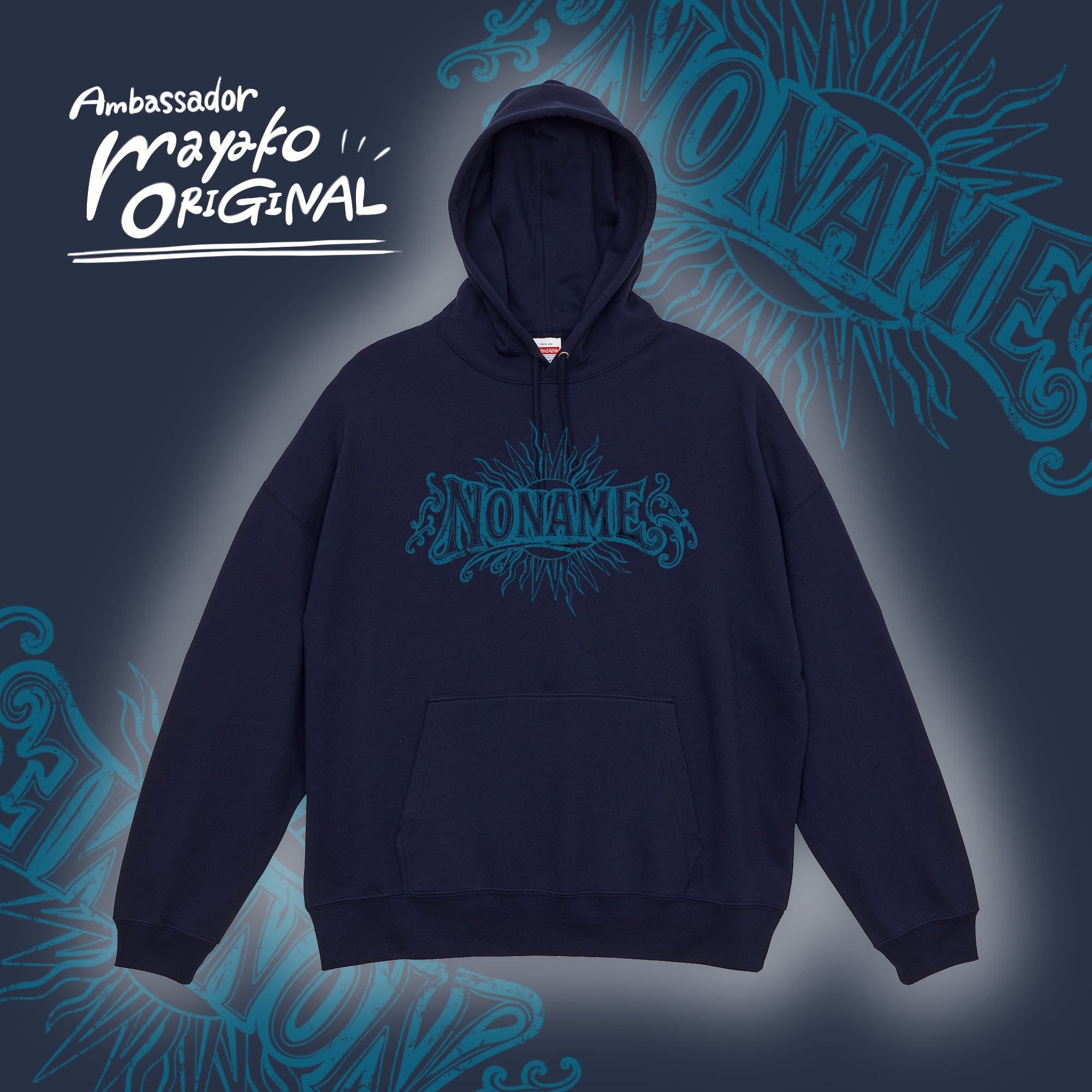 クラシカルな「NONAME.」ロゴにサンバーストモチーフを組み合わせた、存在感あるプルオーバーパーカー。ヴィンテージ感とストリートテイストを融合させた一枚に仕上がっています。